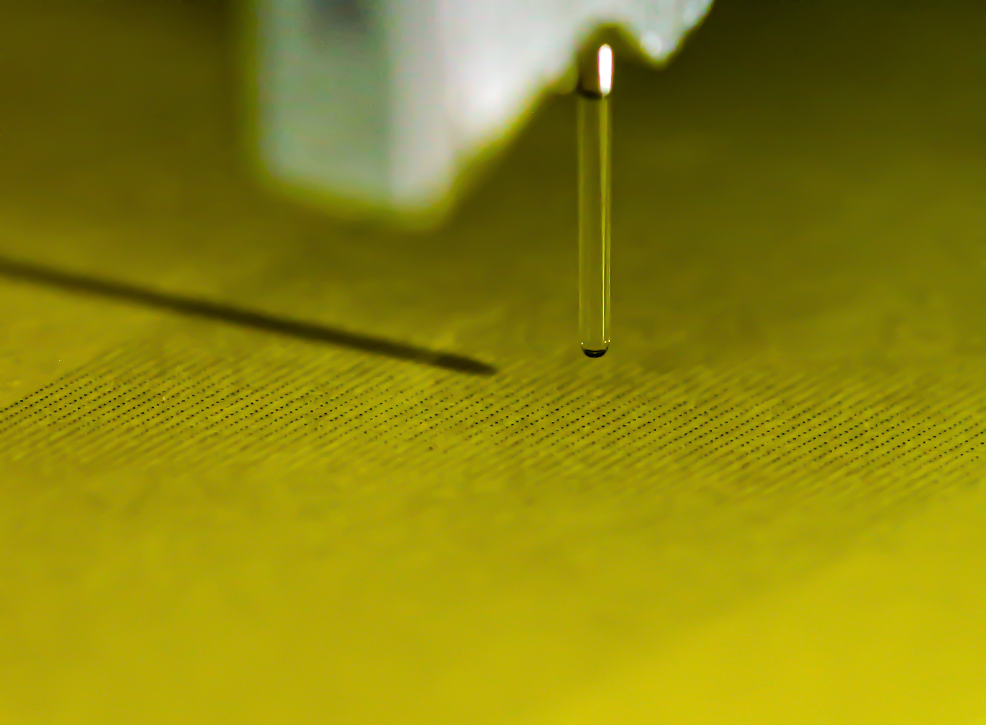 Another benefit of non-contact deposition is that chemistries can be delivered faster than contact/near-contact methods. For contact deposition methods, it takes time to pause, move to the surface for each dispense, then move away from the surface. This can be a cumbersome and slow process and it compounds with each dispense cycle. Long dispense cycles may artificially create variation when reagents are deposited due time lags between the first and subsequent dispenses.