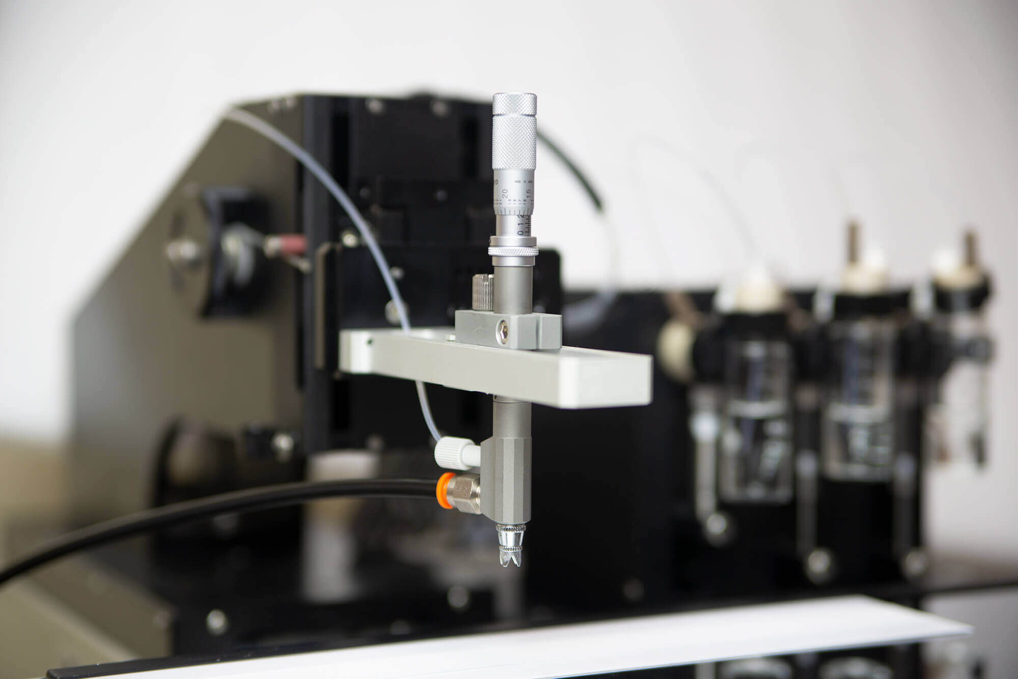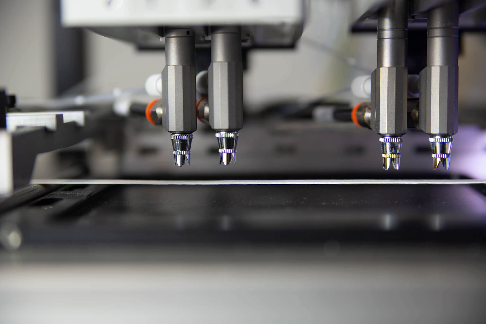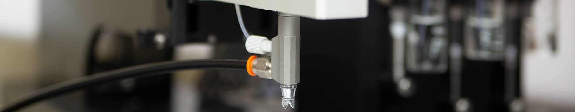 BioDot’s AirJet uses pressurized air to atomize fluid passing through the dispensing nozzle to create a non-contact, quantitative aerosol spray that can generate a dot or line. This proprietary technology couples the dispensing nozzle with a high-resolution syringe pump to dispense quantitative volumes.