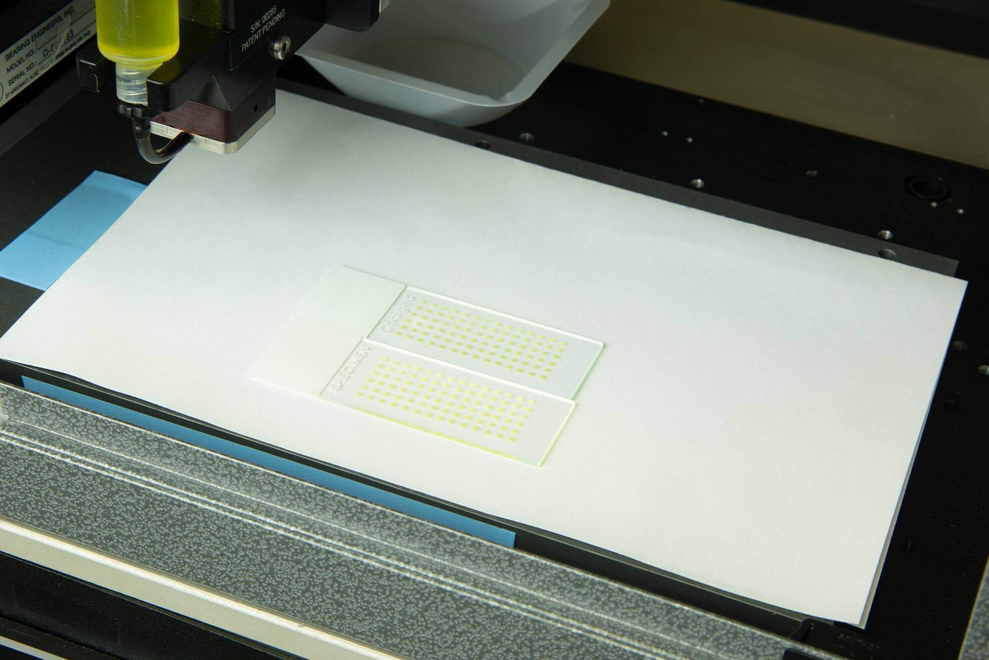 BioDot’s PolyJet dispenses oils, adhesives and reagents with particles and other viscous fluids. PolyJet technology feeds liquid to a constant volume cavity, followed by pneumatic actuation of a diaphragm that ejects a drop through an orifice.